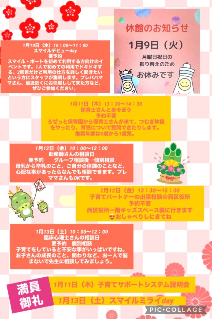 ※1月11日子育てサポートシステム入会説明会、13日スマイル・ミライdayは定員に達し、申込を締切りました。