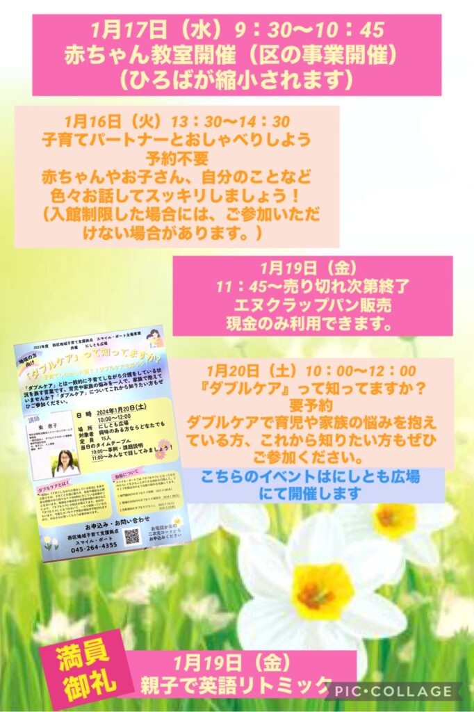 ※1月17日(水)午前は区の事業(赤ちゃん教室)開催のため、ひろばが縮小されます。