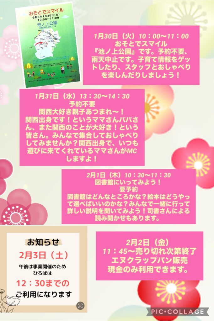 1月30日(火)「おそとでスマイル」 3地区の池ノ上公園 予約不要、雨天中止