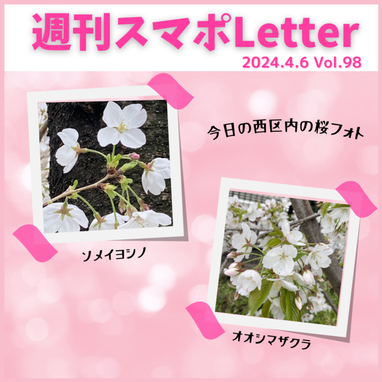 4月最初の週刊スマポLetterは,今日の区内の桜の花の撮れたて画像です。