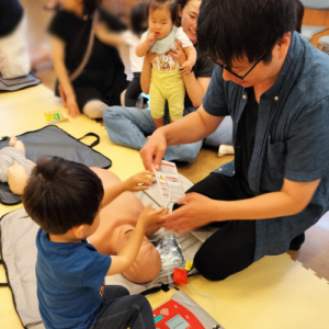 それとは別に本日6月8日(土)戸部本町ケアプラザにて、「パパとママのための救急講座」が実施されました。胸骨圧迫やのどをつまらせたときの対処法など、西消防署の方から丁寧に実技指導をうけることができました。