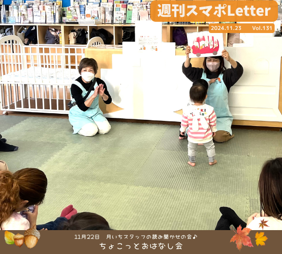 11月は「市民の読書活動推進月間」で、スマイル・ポートでも先週の中央図書館の司書さんの出張おはなし会の他、読み聞かせボランティア「ぽっぽっぽっ」さんのおはなし会がありました。
