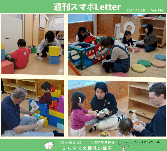 今日12月28日はスマイル・ポートの2024年最終日。遊びに来たパパママやボランティアの吉本さんも大掃除のお手伝いをしてくれました。