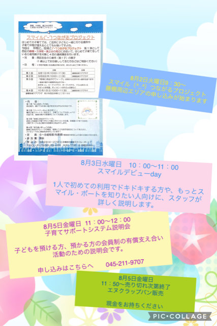 ◆8月の会員向け「スマイル・ホッと預かり」 7月29日から予約受付を開始しました♪
