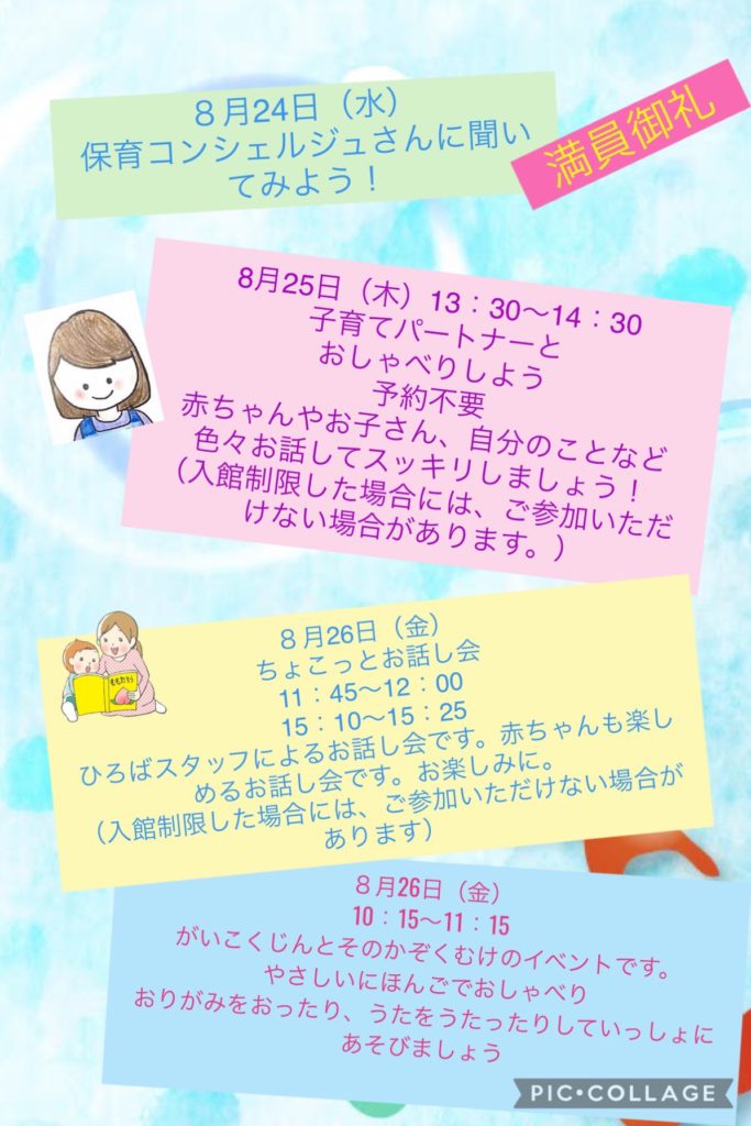 ※8月24日(水)保育コンシェルジュさんに聞いてみようは、定員に達し予約を締切ました。