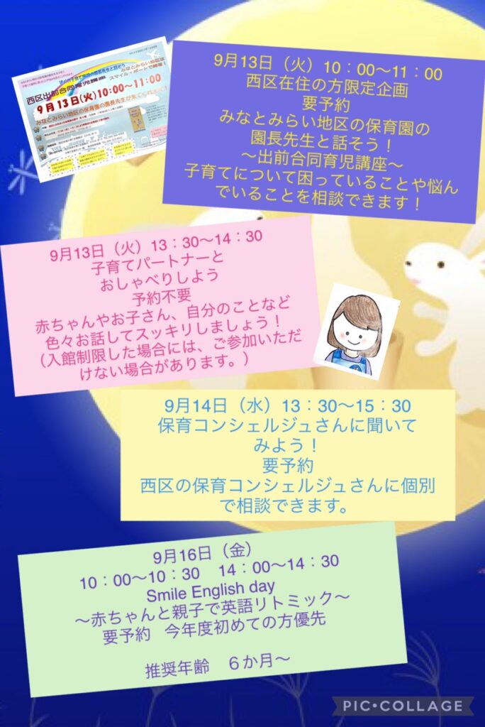 ◆9月13日(火)「MM地区の保育園の先生としゃべろう」出前合同育児講座 西区の方限定 予約可能