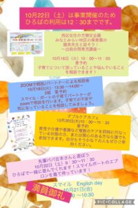 10月22日(土)は区の事業開催のため、ひろばの利用は12:30までになります。お間違いのないようにお願いします。