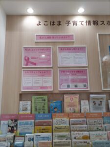 子育てに忙しいとついつい自分のことは後回し。でも乳がんのことは常に気を付けておきたいですね。女性が生涯に乳がんにかかる割合はなんと「9人に1人」だそうです。セルフチェックとともに、健診にもぜひ行ってください。早期に発見すれば治る病気です。写真の横浜子育て情報スポットの掲示板でもピンクリボンの特集をしています。アンパンマンこどもミュージアムの無料エリアにあるので遊びに行ったときには立ち寄ってくださいね。