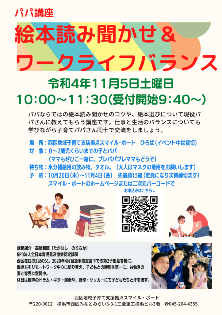 ◆11月5日(土)  パパ講座「絵本の読み聞かせ&ワークライフバランス」 要予約
