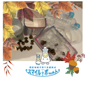 スマイル・ポートの出張ひろばは、神奈川大経営学部の学生さんとのコラボで、2か所で企画を展開します。舗装されているひろば付近では子育てサポートシステムを紹介するテントブースの他、マットを敷き詰めたコーナーを作り、赤ちゃん連れでもゆっくり過ごせるようにします。スマイル・ポートの水色のエプロンをつけ、新生児人形を抱いたスタッフが目印ですよ♪ また、ちょっと離れていますが、遊具や砂場のある付近に、自然の素材や身近な不要品でつくる工作コーナーも設置します。お子さんと遊ぶヒントが見つかるかも。