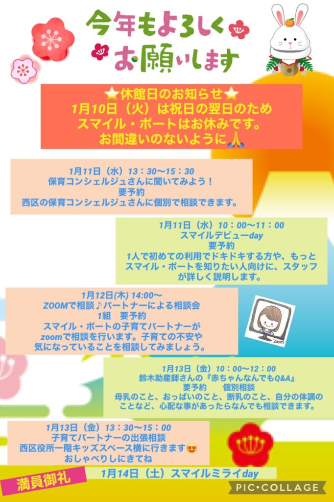 ※1月10日(火)は、月曜祝日の翌火曜日にあたり、スマイル・ポートは休館となります。お間違いのないようにお気をつけてください。