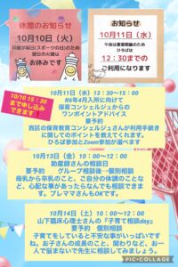 ◆10月14日(土) 「臨床心理士さんの相談日」 要予約