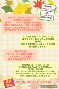 ◆11月8日(水) 保育コンシェルジュさんの相談日 要予約