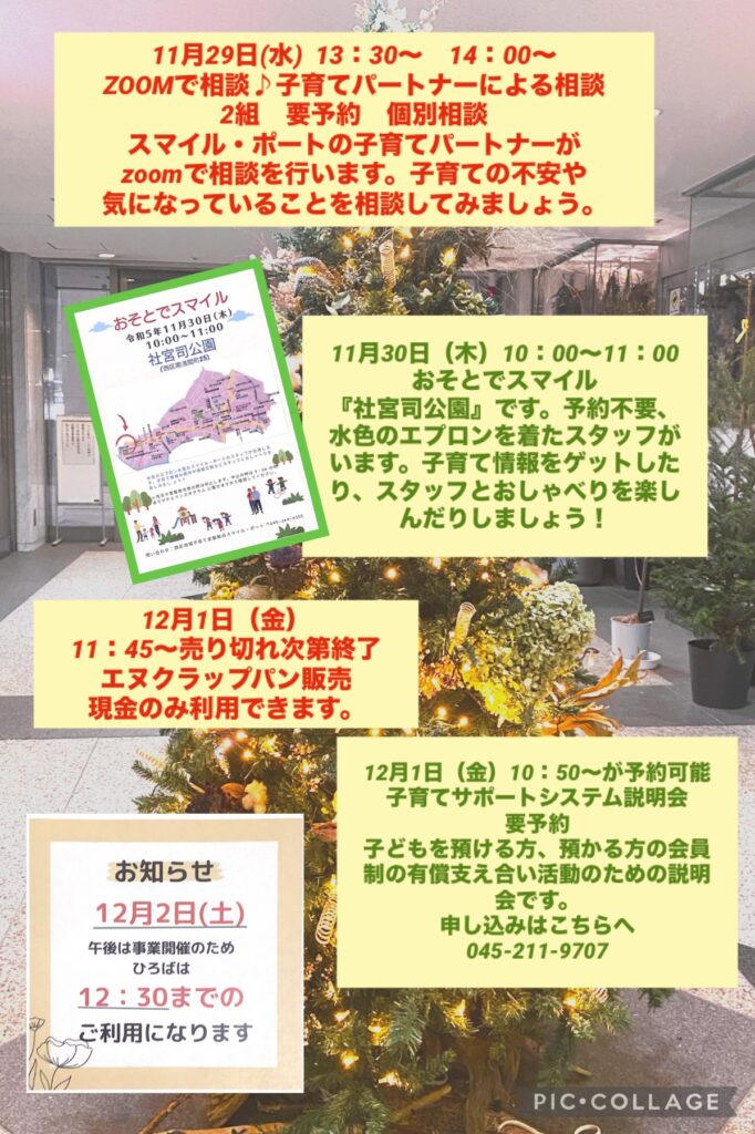 ◆11月30日(木) おそとでスマイル スタッフが社宮司公園におじゃまします! 予約不要
